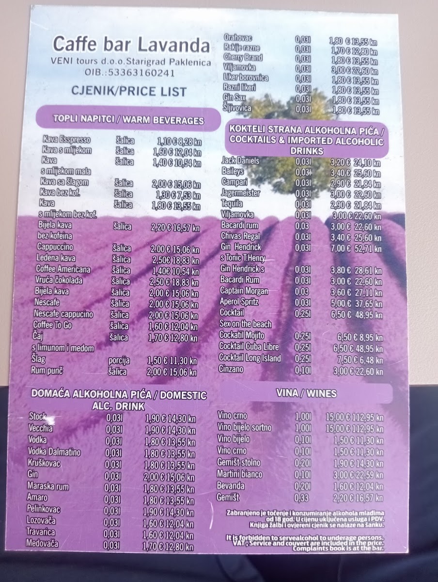 Welcome to Caffe bar Lavanda, a charming destination nestled in Starigrad, Croatia. This versatile establishment combines the atmospheres of a café, beer store, lounge, and wine bar, making it a perfect stop for everyone, from coffee enthusiasts to cocktail lovers.